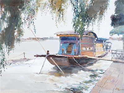“红船颂”主题美术创作,一方面实现了从历史坐标到精神符号的提炼,作为历史见证的嘉兴南湖红船,经过画家的艺术升华,转化为一种可知可感的精神符号;另一方面,这种将历史与当下并置的叙事方式与创作策略,让“红船精神”绽放新的时代光芒。对红色文化的有效弘扬,不仅是对典型符号的反复描摹,还要以恰当的、契合时代审美的艺术形式传达其中蕴藏的精神实质和当代价值。这也是新时代美术创作应当关注的课题。