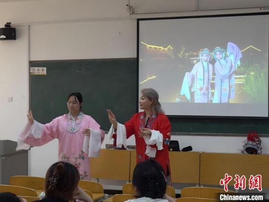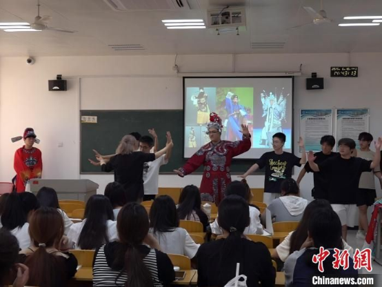 近日,在西安培华学院教学楼内,一堂别开生面的“浸润式”戏曲鉴赏课正在进行。“课堂上体验了穿戏服、戴胡须等内容,老师还手把手教了许多戏台上表演的动作,加深了我对戏曲的了解。”学生贾少锋表示,作为年轻人应该多去接触这些知识,以更好地传承传统文化。