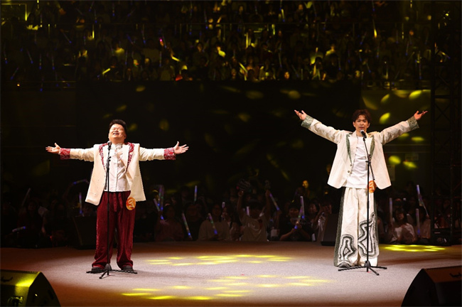 毕庭硕和刘梓轩两位歌手在“凤鸣川大”校园十佳歌声大赛决赛舞台演唱《Never Say Goodbye》,引起全场共鸣,赢得全场掌声。四川大学校团委供图