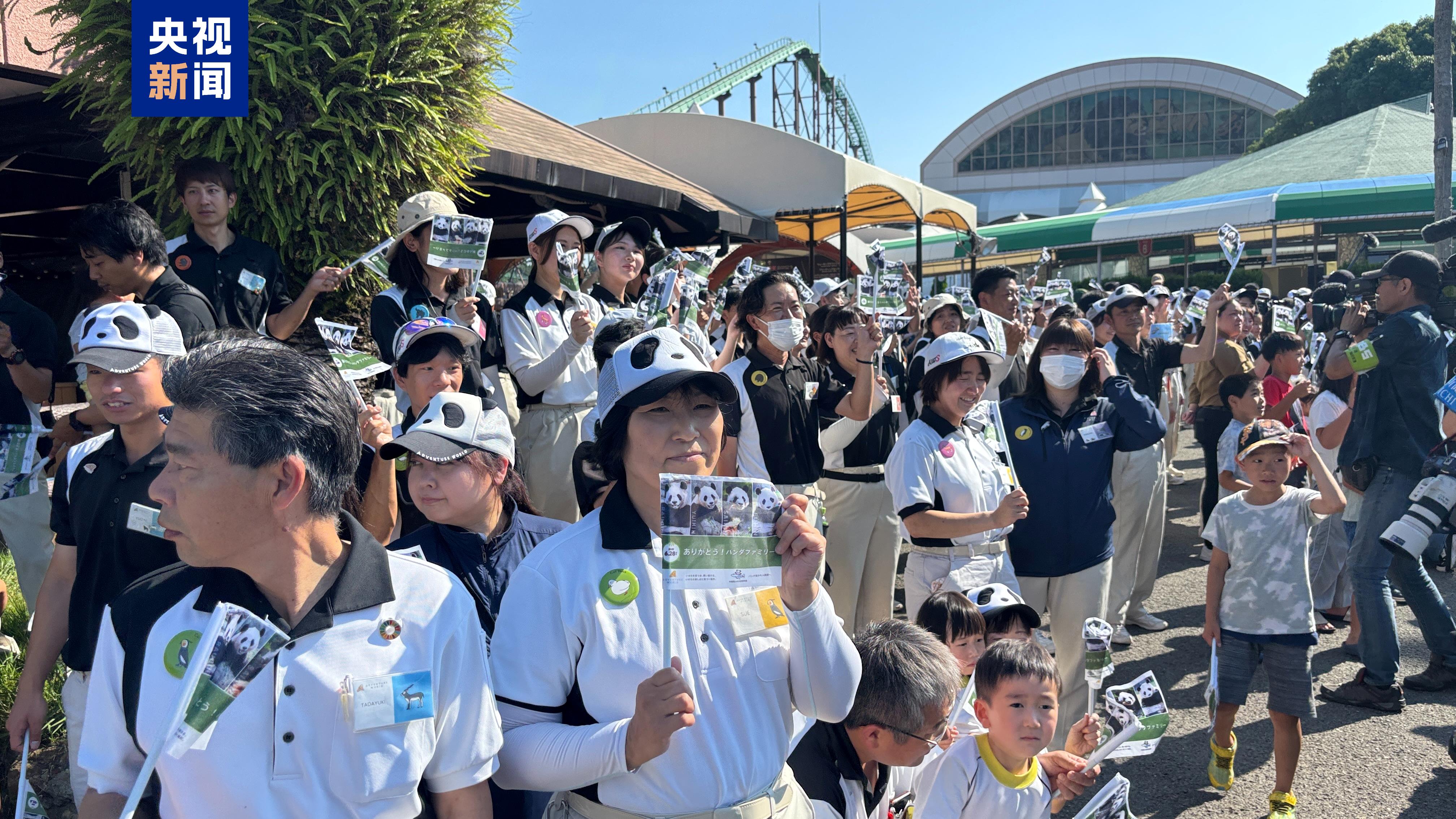 大批来自日本各地的大熊猫粉丝一早来到游乐园,为它们送行。