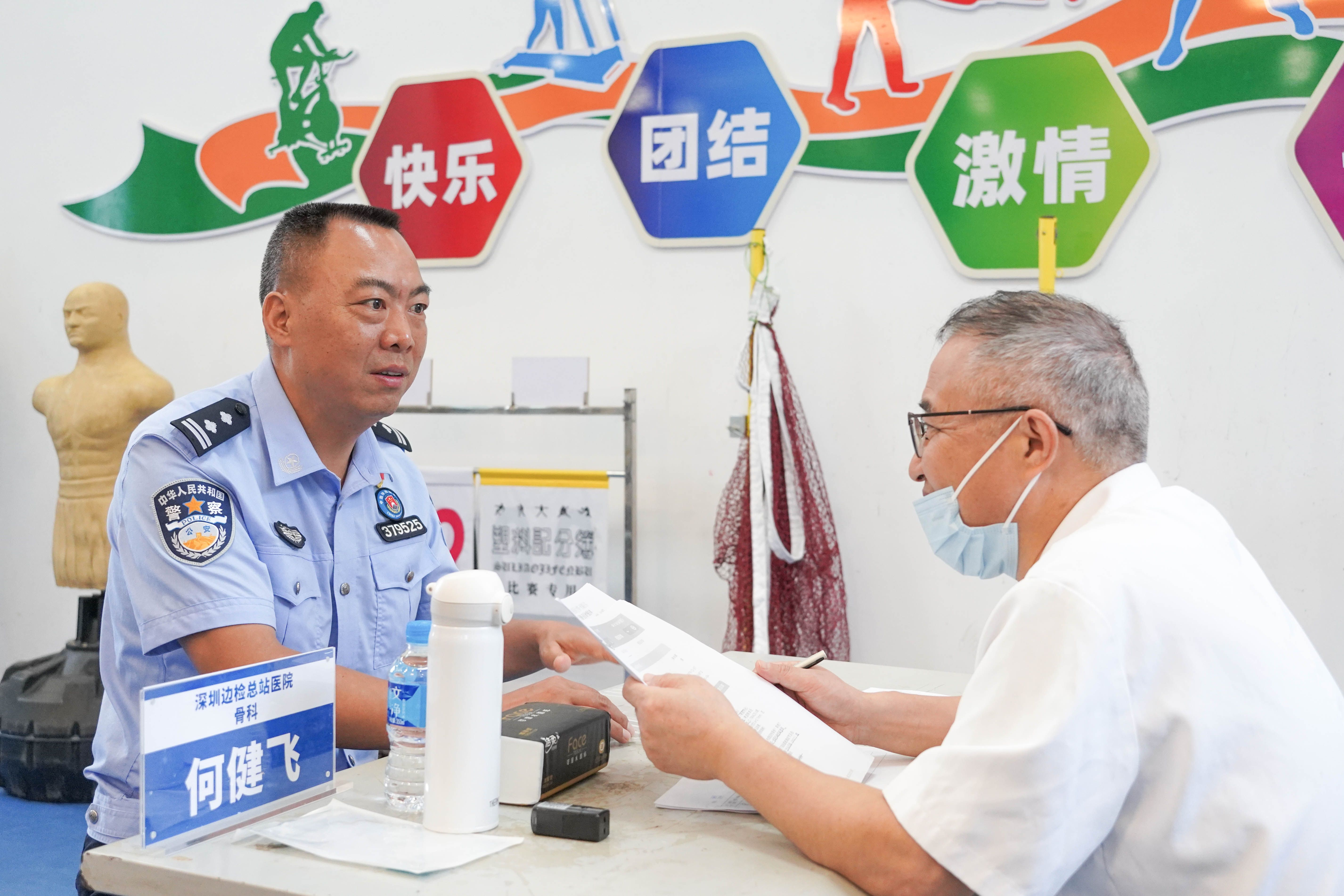 6月24日,巡诊医疗队抵达都龙边境派出所,余永顺早早来到张忠荣家,接上老两口一同前往巡诊点。“医生,能先给咱家叔看看吗?”面对他的请求,深圳边检总站医院的主治医师徐利民立刻答应。问诊、扎针,余永顺始终担忧地盯着张忠荣的情况,直到看见医生精准熟练地完成治疗,才逐渐放下心来。直到张忠荣夫妇结束诊疗,他才轮到自己问诊。