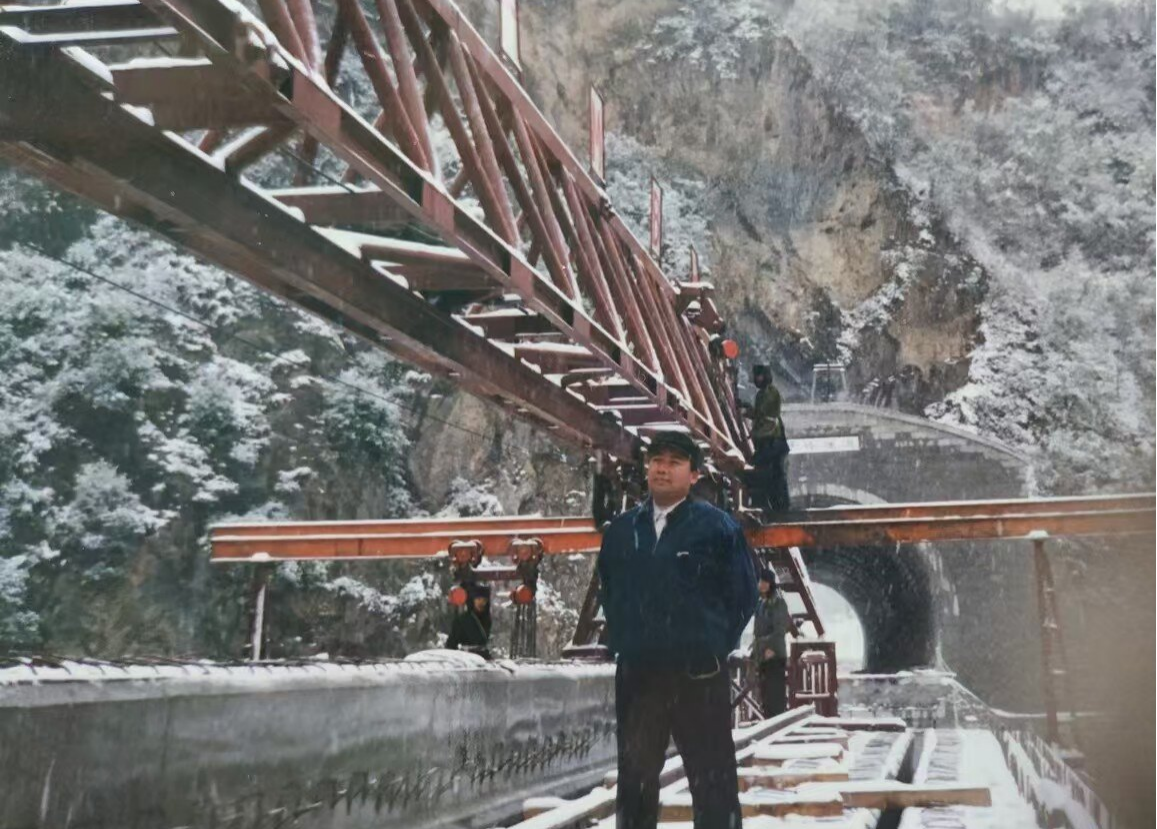 秦巴山高路险,大型铺轨机无法抵达。工人们只能在狭窄隧道内,肩扛手抬25米长的沉重轨排,脚下是易塌的道砟,步履维艰。在女儿的记忆中,手拿铅笔,对着图纸伏案的父亲经常感叹:“山肚子里铺铁轨,比绣花还难!”