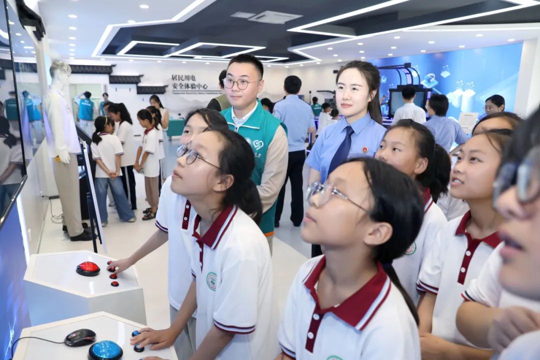 新沂市窑湾中心小学的小学生们作为第一批参加未成年人“防侵害、防溺水、防触电”安全教育夏令营活动的学生在国网新沂市供电公司窑湾供电所居民“防触电”教育基地参加了安全教育。