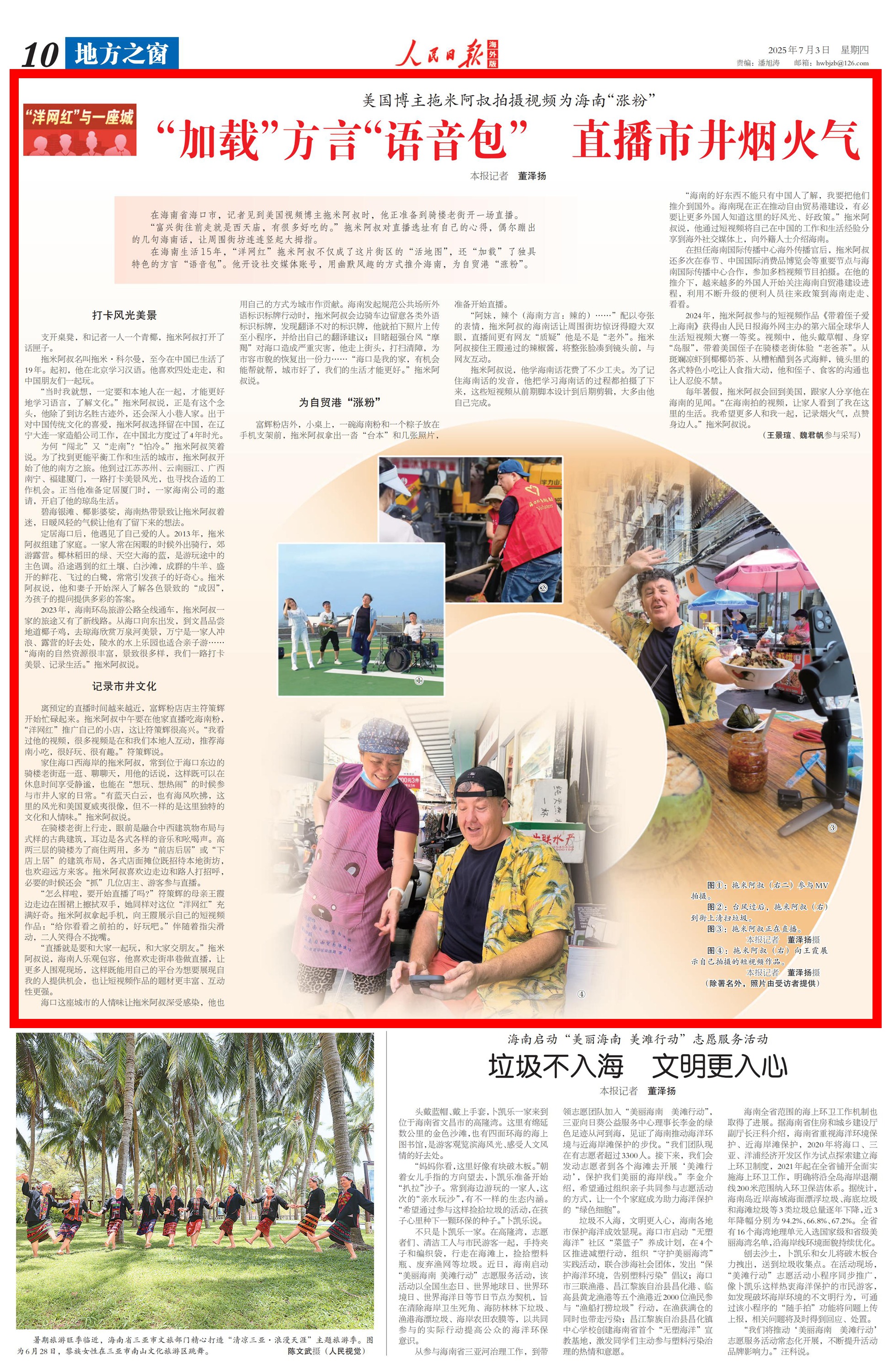 在海南生活15年,“洋网红”拖米阿叔不仅成了这片街区的“活地图”,还“加载”了独具特色的方言“语音包”。他开设社交媒体账号,用幽默风趣的方式推介海南,为自贸港“涨粉”。