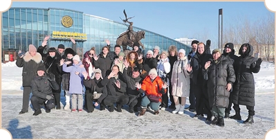 俄罗斯游客在饶河县四排赫哲风情旅游景区合影。饶河县融媒体中心供图
