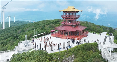 每年5、6月间,大顶子山遍开繁花,兴安杜鹃从山腰到山顶渐次开放。《乌苏里船歌》里的一句“白云飘过大顶子山”,让饶河县境内的这座山颇有知名度。