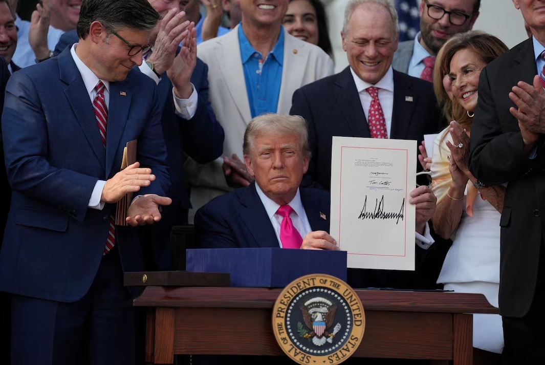 当地时间7月4日,美国总统特朗普签署“大而美”税收和支出法案,使其生效。