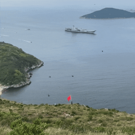 迎接山东舰航母编队访港的画面