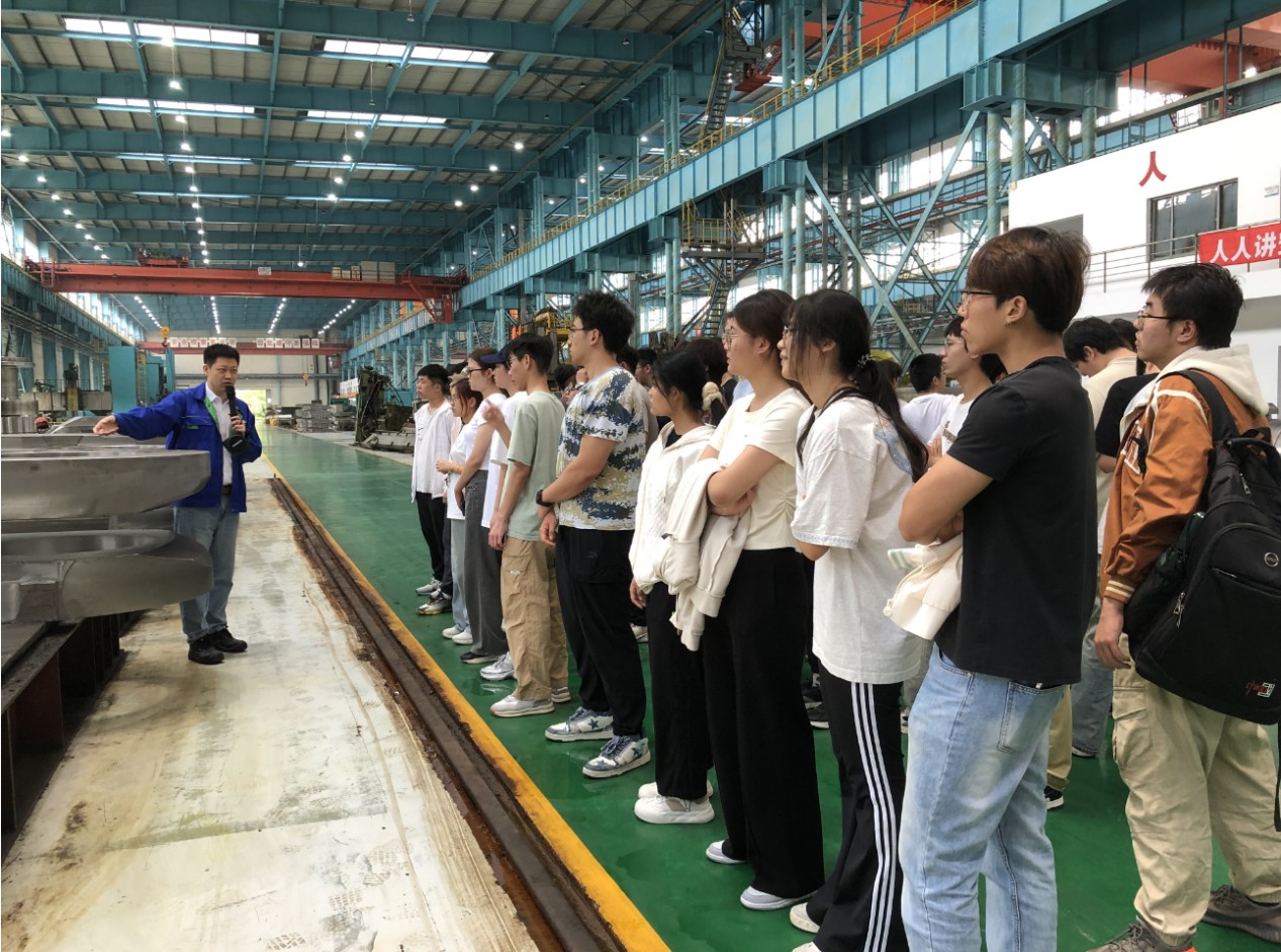 学生在上海船用曲轴有限公司聆听现场讲解。上海电机学院供图