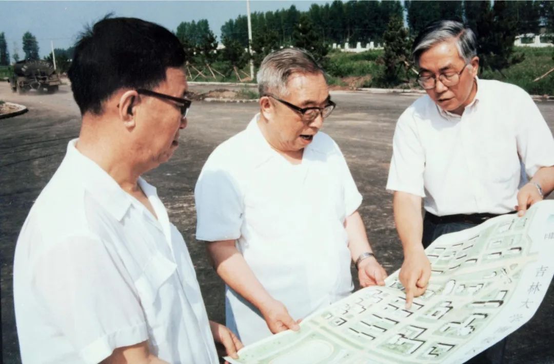 唐敖庆(中)与吉林大学校领导现场讨论新校区规划