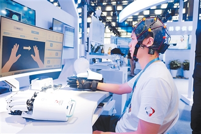 第十一届中国(上海)国际技术进出口交易会上的一款人工智能多模态脑机接口系统。 |