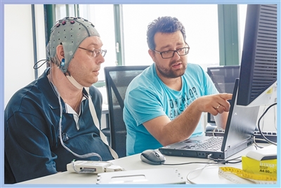 在瑞士洛桑,科学家在进行脑机接口实验。 |