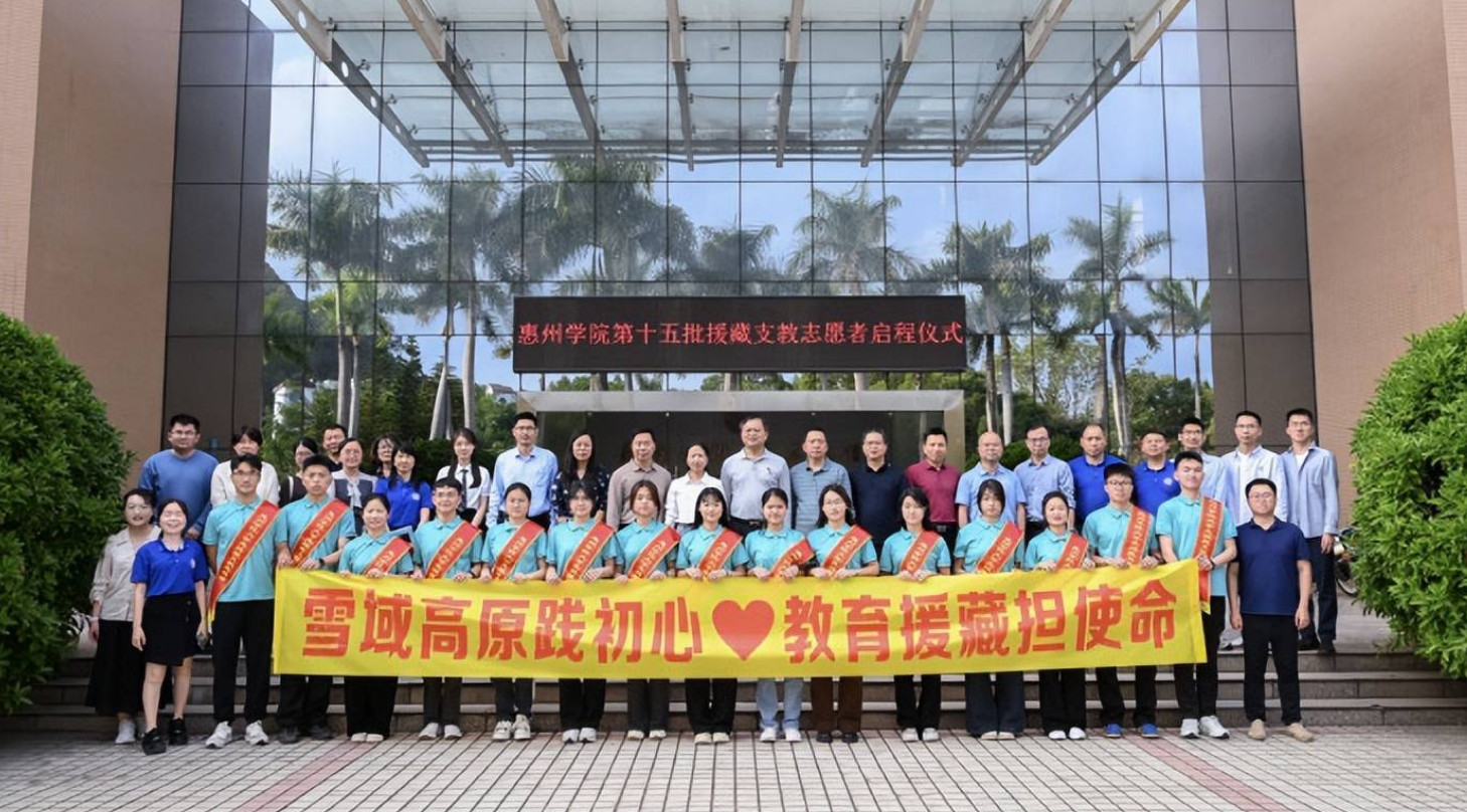 惠州学院与惠阳区作为校地结对共建单位,双方按照广东省委省政府援藏工作部署,携手同行支援西藏林芝朗县教育事业,以教育之力促进各民族交往交流交融,铸牢中华民族共同体意识,并着力为当地锻造“带不走”的高素质教师队伍。2016年至今,惠州学院与惠阳区累计选派15批207名大学生及教师赴朗县支教,共同谱写了新时代教育援藏的惠州答卷。