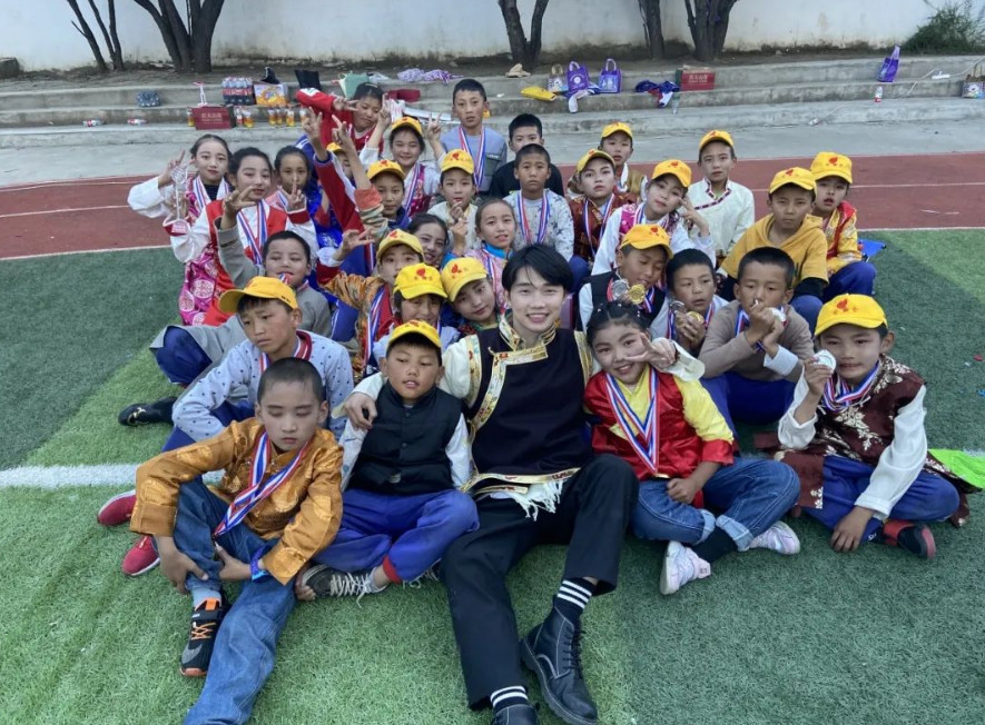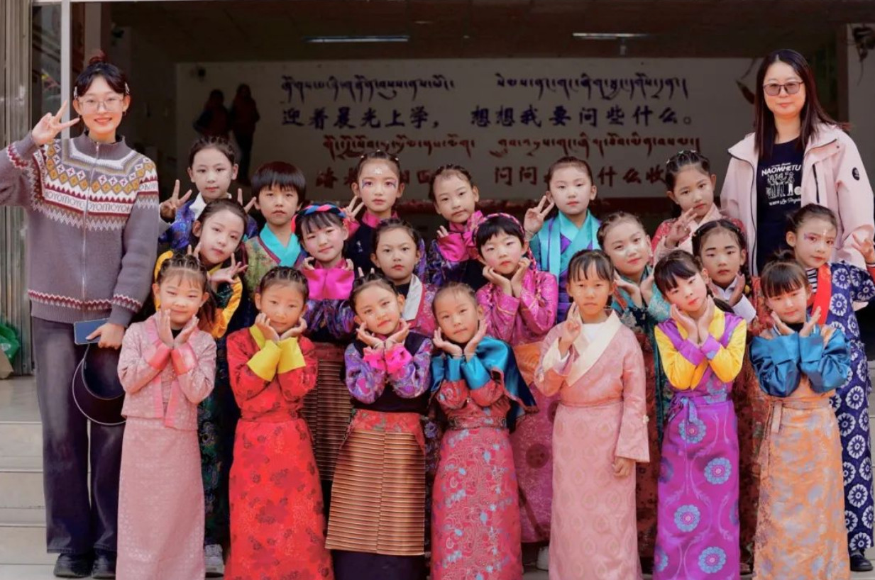 支教队员通过搭建“口语桥梁”,发起“每日一句”互学普通话与藏语活动。创新设计融合汉藏文化的特色课堂,将现代知识融入藏族传统,改编藏舞为课间操,同赏格桑花海,共跳热情锅庄舞。侗族、壮族等不同民族的支教队员带头组织红歌赛,各族师生在歌声中“像石榴籽一样紧紧抱在一起”。