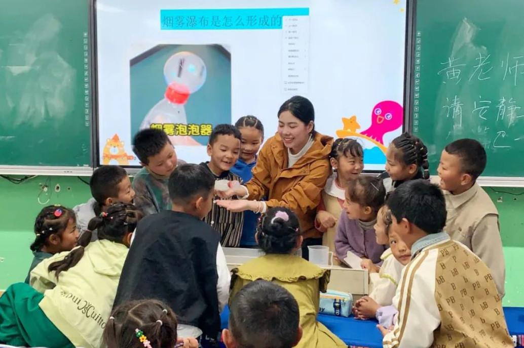 针对朗县少儿科学教育薄弱的痛点,惠州学院累计投入100万元,专项研发《少儿科学课程》,共建“惠州学院•科学教育特色园”。该项目不仅激发了少儿科学探索热情,形成校园科学文化氛围,更在幼儿园管理、教师专业发展、科研教改等方面提供持续帮扶,助力当地教育理念更新与教学水平提升。支教队员将课程与课外活动结合,引入新颖教学方法,举办“体艺节”、英语节、数学文化节、活动,不仅丰富了校园生活,也有效提升了学生综合素养和学习兴趣。