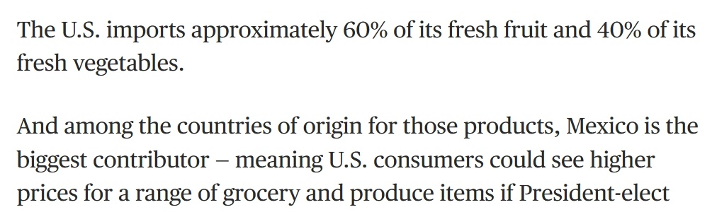 事实上,美国有60%的新鲜水果和40%的新鲜蔬菜都依赖进口。而墨西哥多年以来一直是美国最大的果蔬供应国。