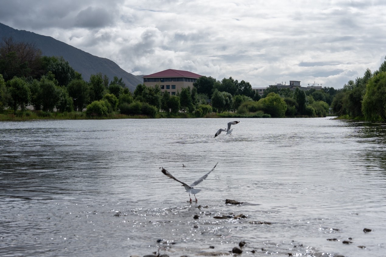 “水上精灵”红嘴鸥在拉萨河内河栖息。