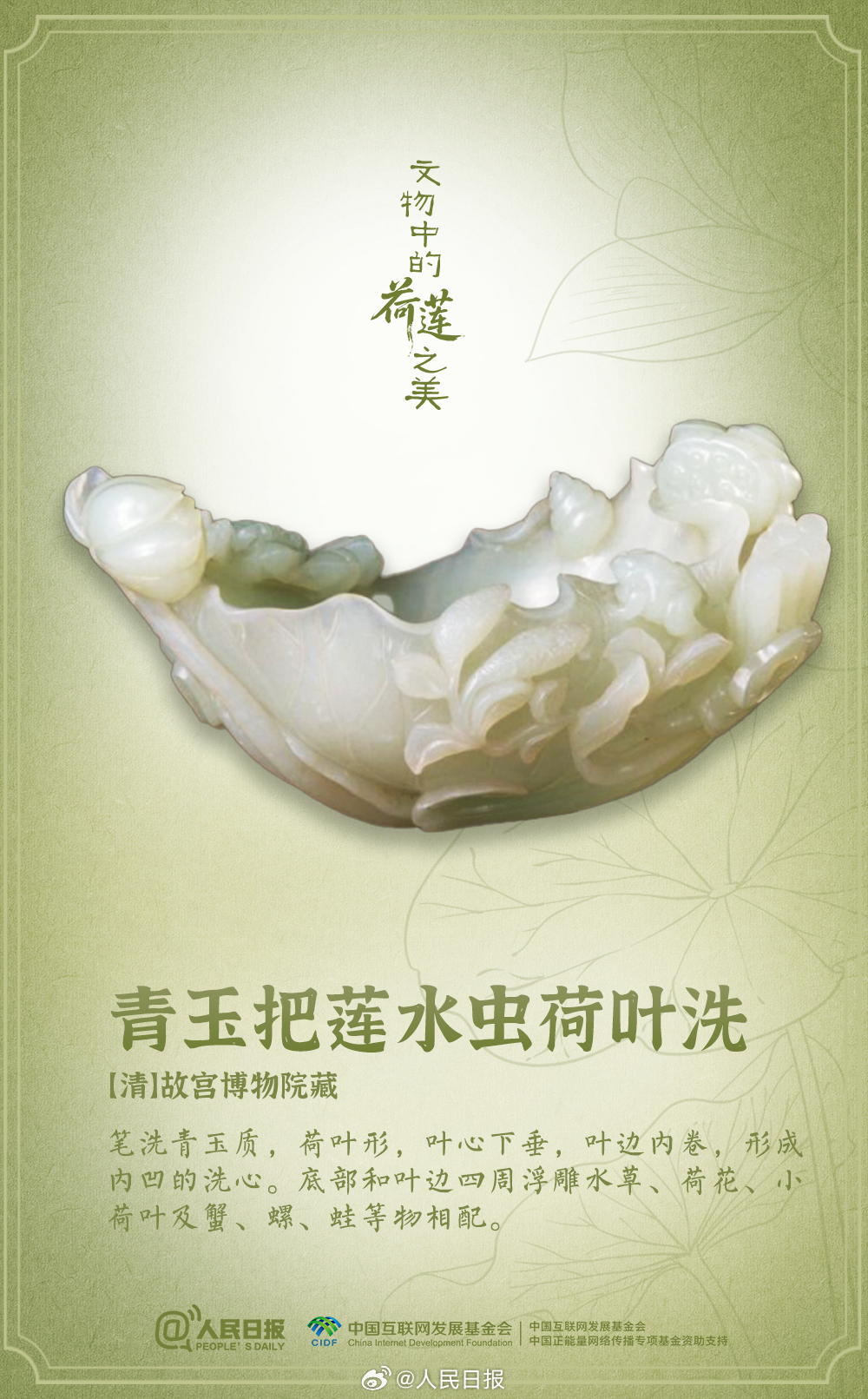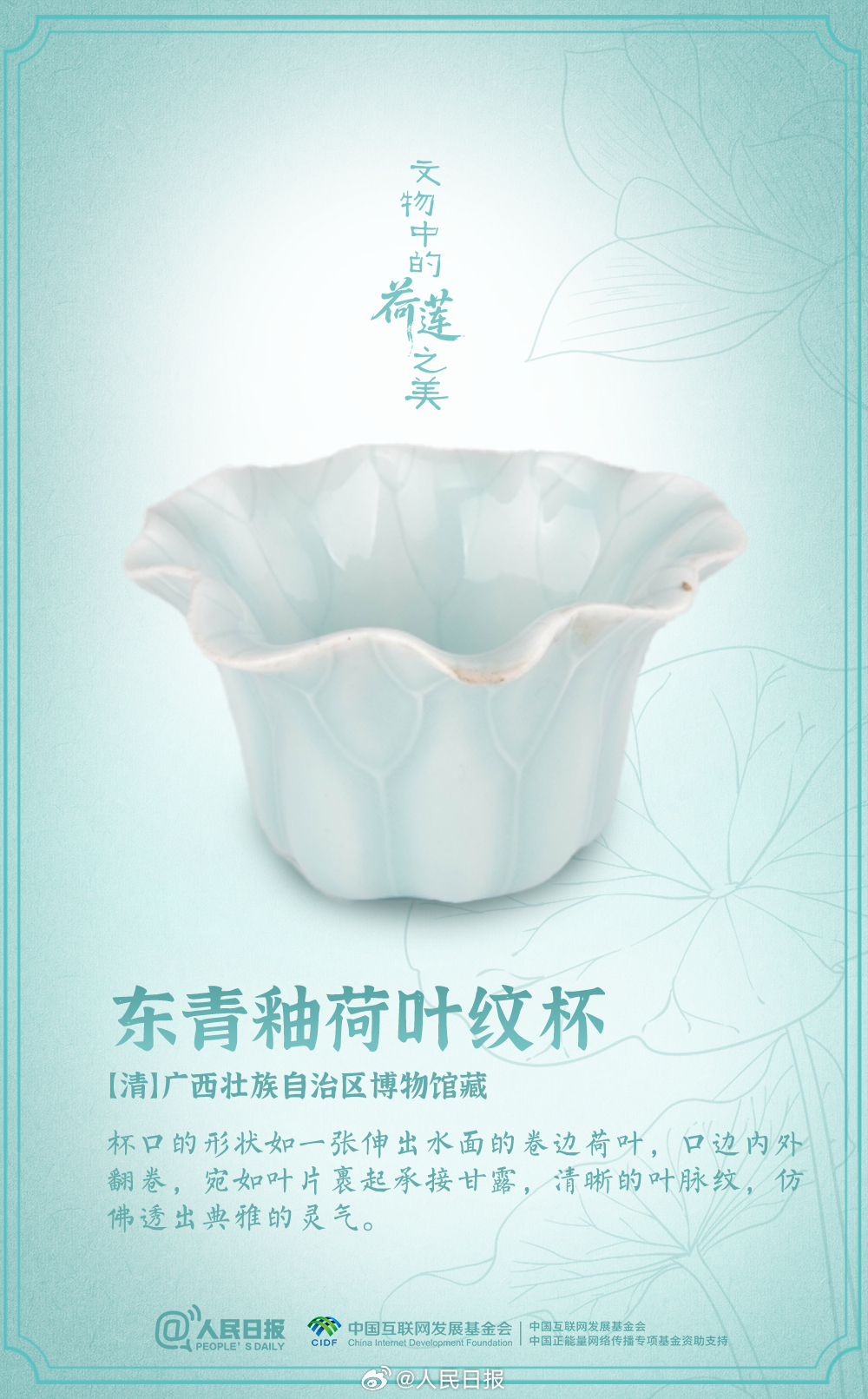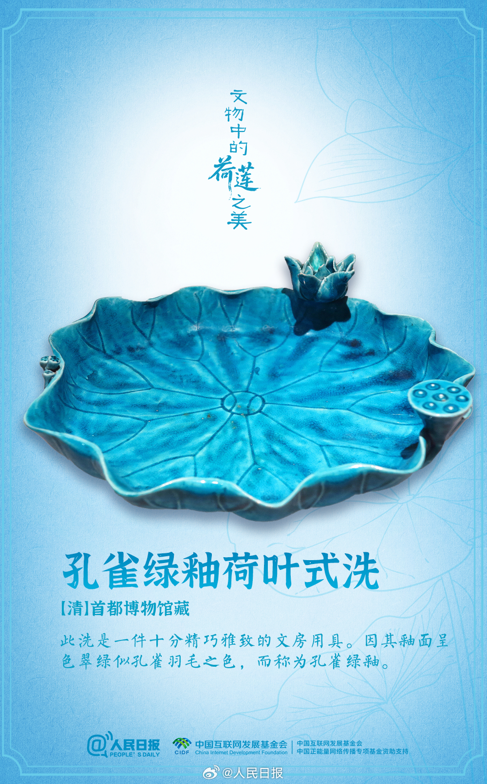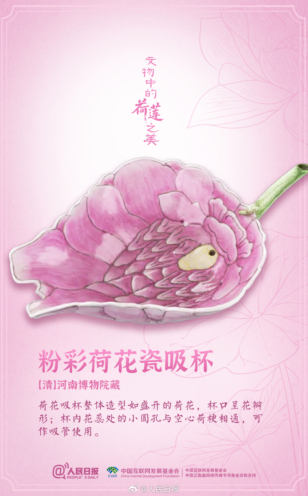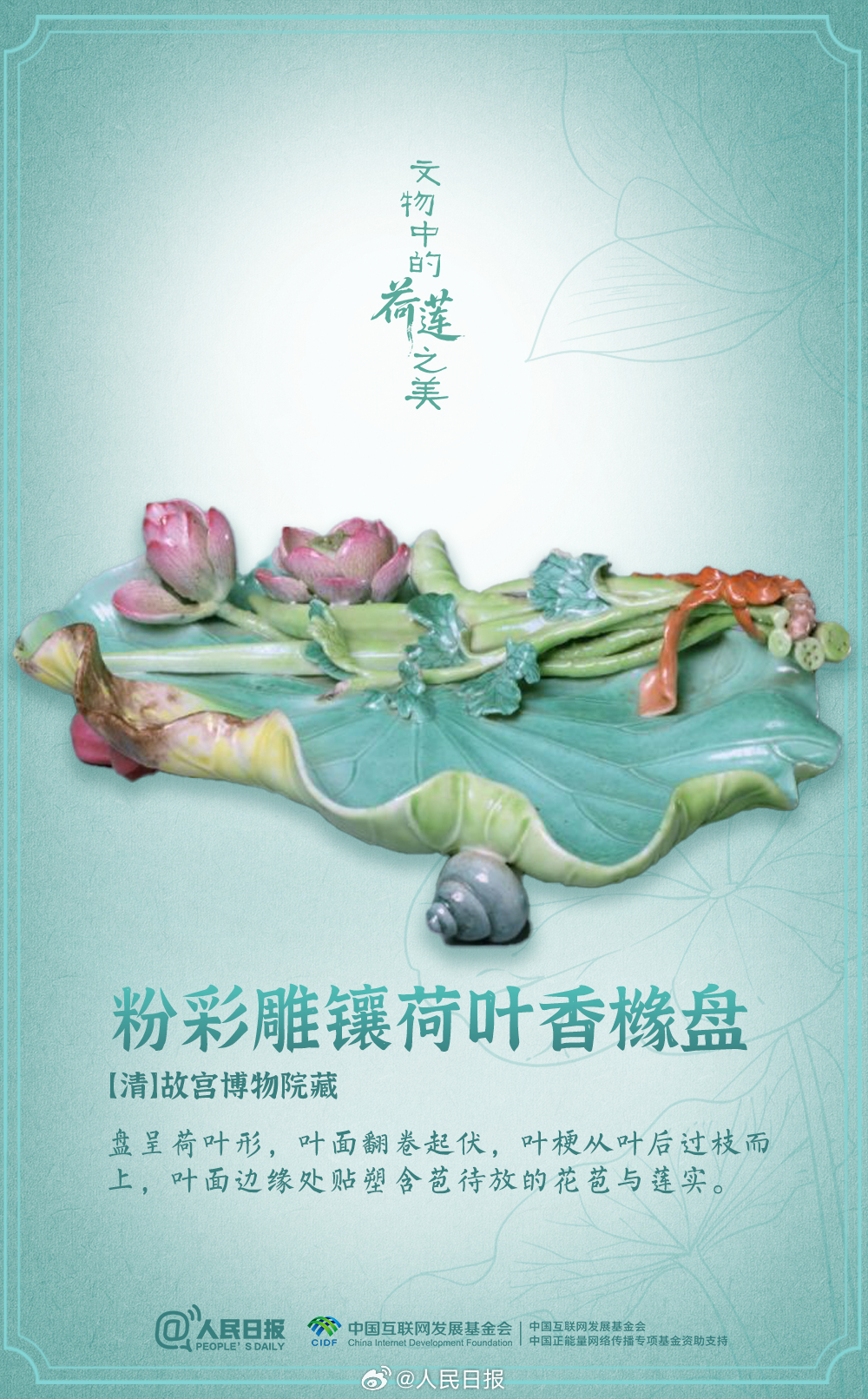 盛夏时节,荷花莲花也开满了博物馆。粉彩荷花瓷吸杯、莲花形玻璃托盏、孔雀绿釉荷叶式洗……荷与莲的浪漫,连古人都偏爱。消消暑,洗洗眼,感受文物中的荷莲之美。愿你日子“荷荷”美美,每天好运“莲莲”!