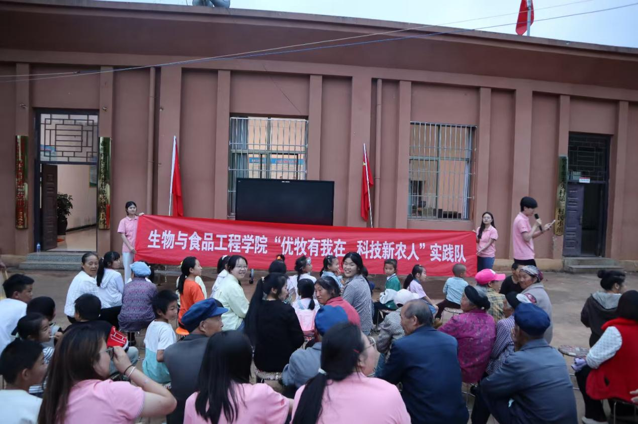 科普讲座结束后,实践队与村民们一起举办了热闹有趣的联欢活动。活动现场欢声笑语不断,村民们与实践队成员载歌载舞,共同庆祝这次意义非凡的科技助农活动。通过联欢活动,不仅增进了实践队与村民之间的感情联系,也为后续的合作打下了良好的基础。