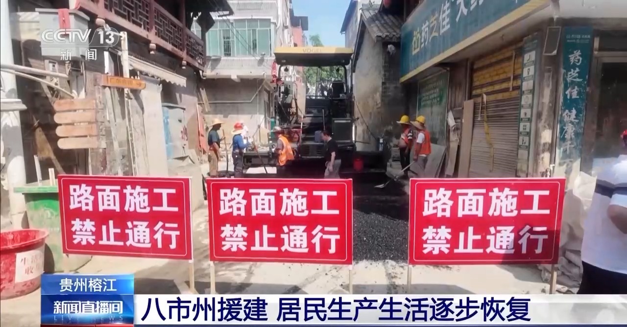 在榕江老城区的一条辅路上,帮扶队正忙着铺设沥青路面,全力保障当天下午就能通车。据介绍,毕节市帮扶队主要负责的区域一共覆盖3个网格。从清除淤泥到修复排水管网,从受损路面恢复,到居民房屋除险加固等,都属于帮扶队的工作任务。