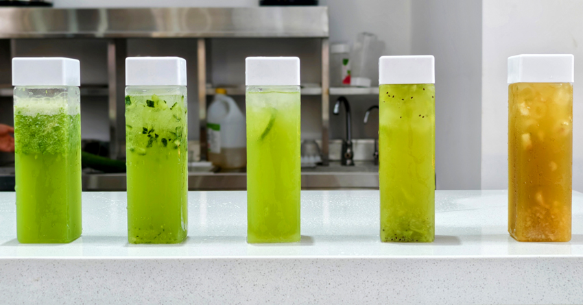 仙人掌与各种果蔬搭配调制的饮品。人民网 尹馨摄