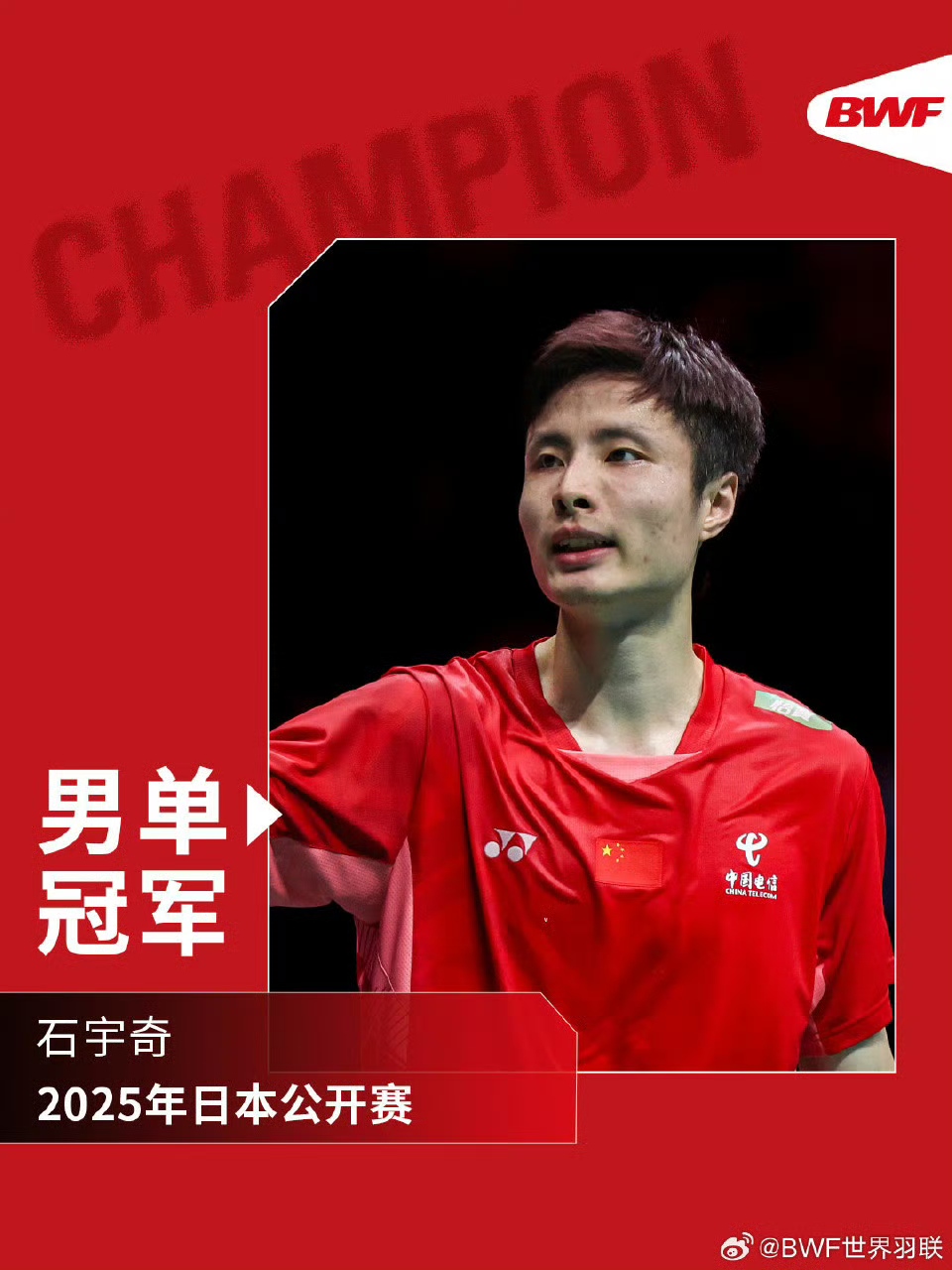 石宇奇夺得日本羽毛球公开赛男单冠军
