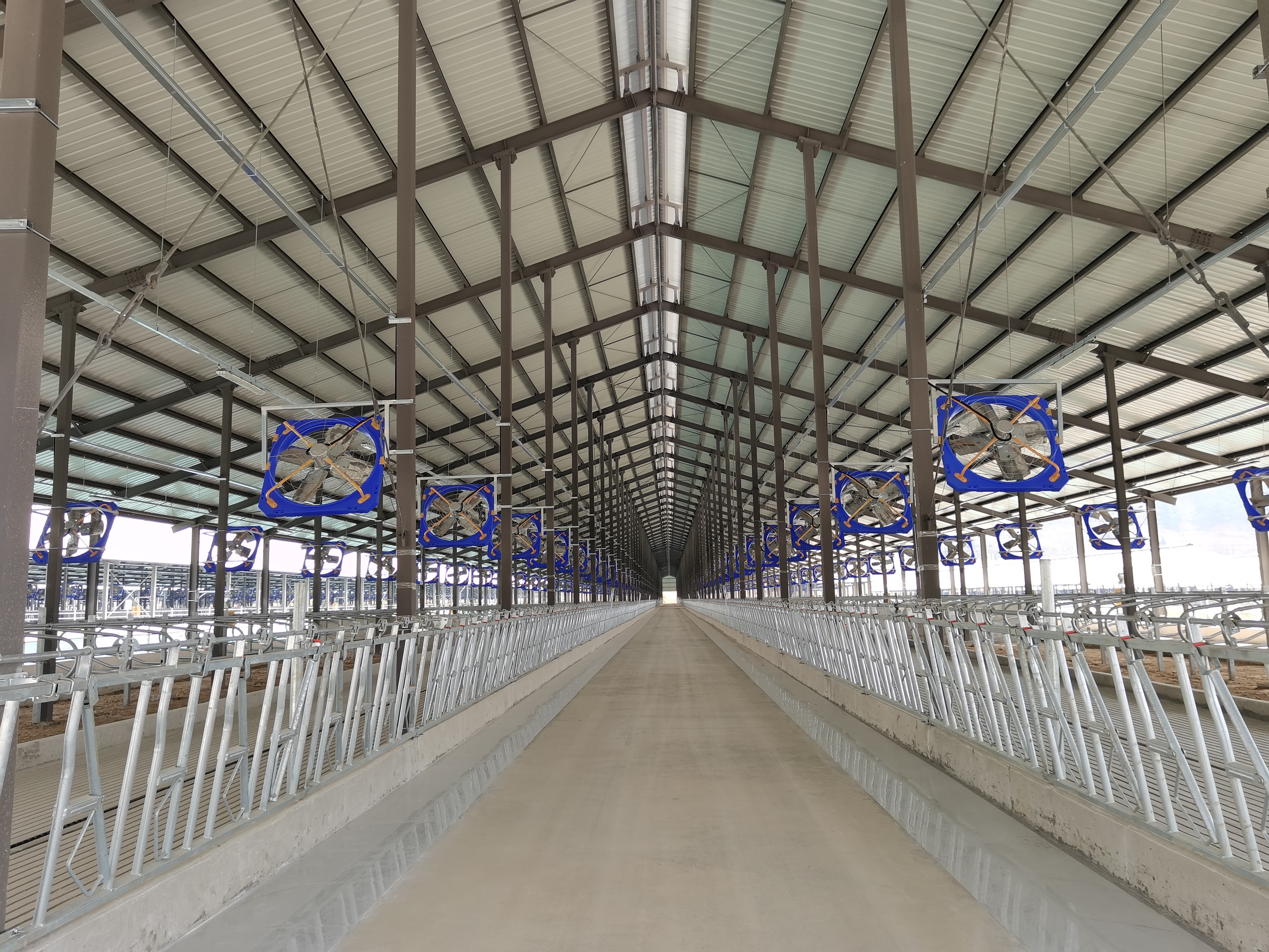 走进牧场,909.2亩的场区规划井然有序。一排排标准化牛舍整齐排列,智能化挤奶设备静待启用,8座青贮窖、3000立方米蓄水池及5.72万立方米污水处理池构成完善的配套体系,3000米围墙与2000米场区道路勾勒出清晰的功能分区。职工区、饲草饲料区、污水污粪处理系统及屋顶光伏工程同步建成。