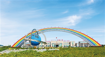 二连浩特公路口岸象征中蒙两国友谊的彩虹桥。 |