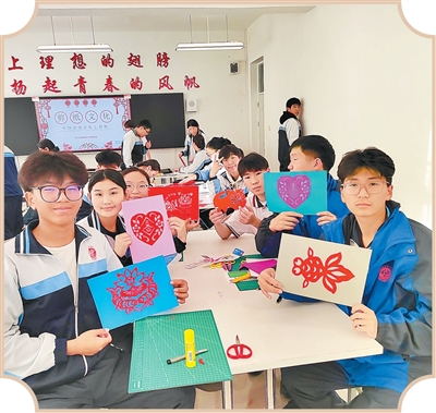 二连浩特第一中学的蒙古国学生体验中国剪纸并展示作品。 |