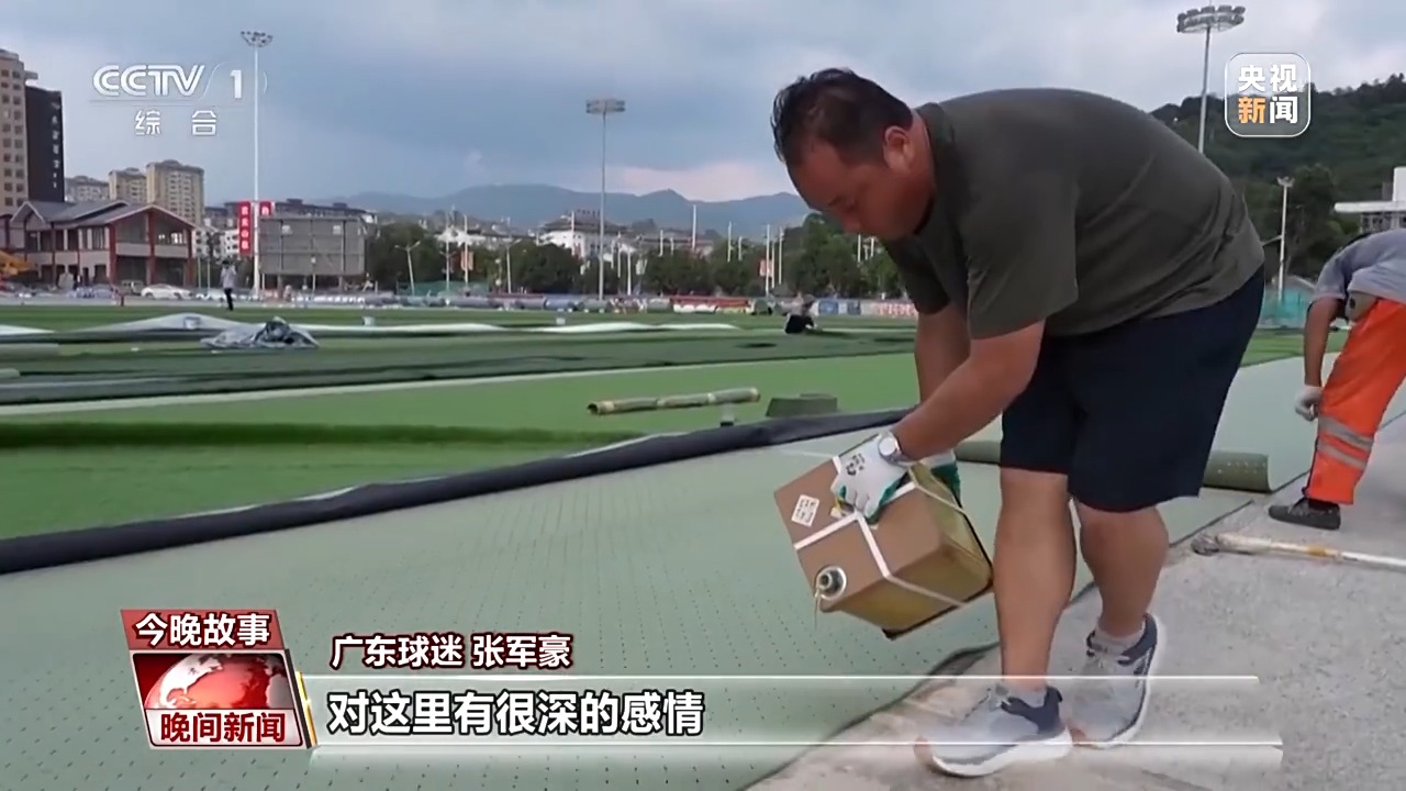 来帮忙卸货的群众越来越多,原本需要六小时才能卸完的货物,两个小时左右就提前完成。张军豪是来自广东的一位球迷。榕江遭遇洪水时,他申请年假,带着救灾物资来榕江,报名当起了志愿者,在物资集散中心搬运货物。听说“村超”球场正在铺设草坪,他又利用休息日,赶到球场来帮忙。
