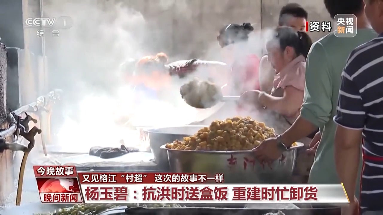 贵州省榕江县餐饮店经营者 杨玉碧:他们七点钟的时候就来到了“村超”现场,我们群众就自发来到这里,跟他们下物资,尽自己的一点微薄之力。