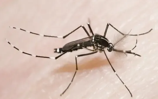 白纹伊蚊体黑而有白纹,俗称“花蚊子”或“黑蚊子”,其白天吸血,吸血高峰为6—8点和17—19点。