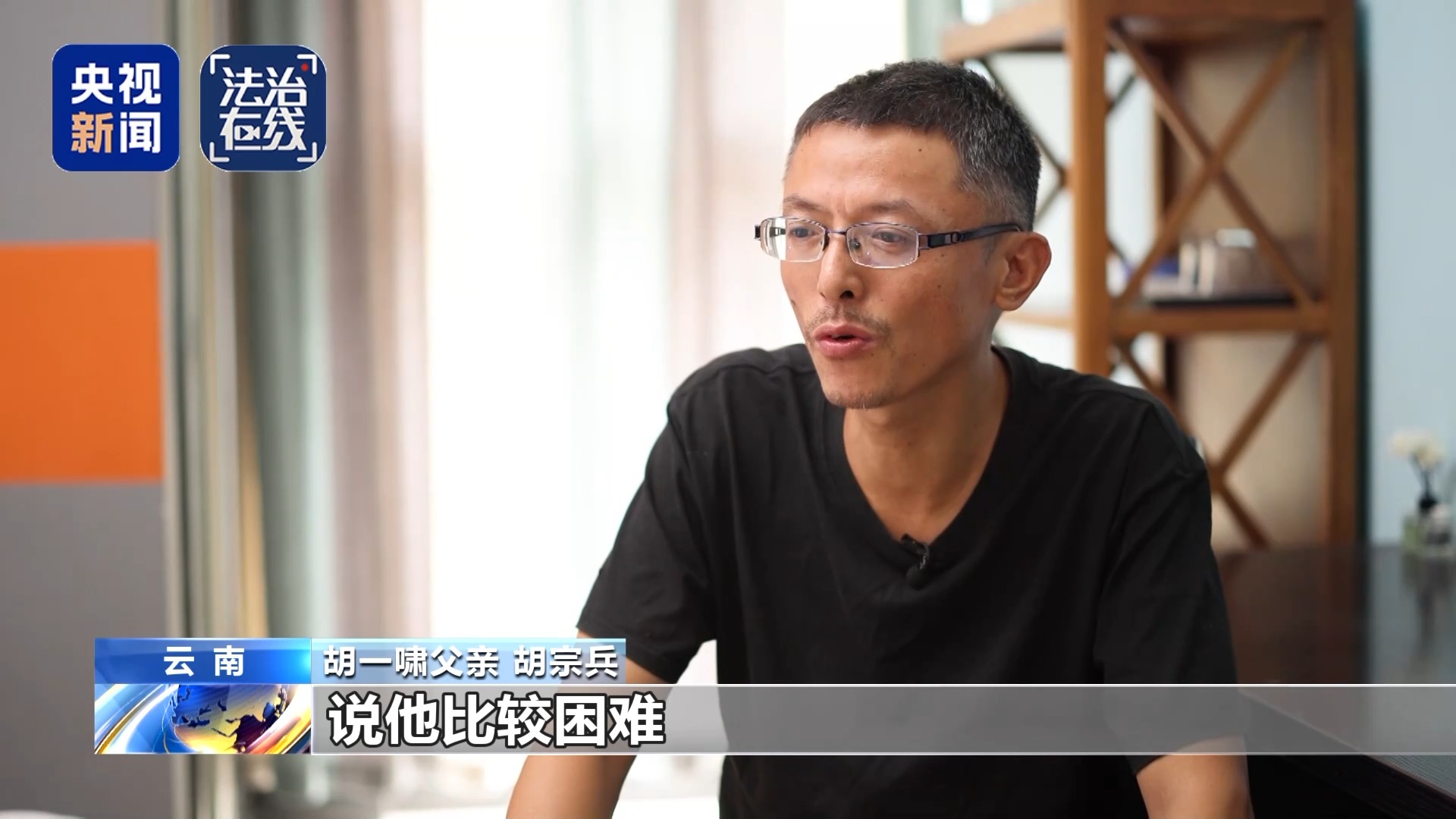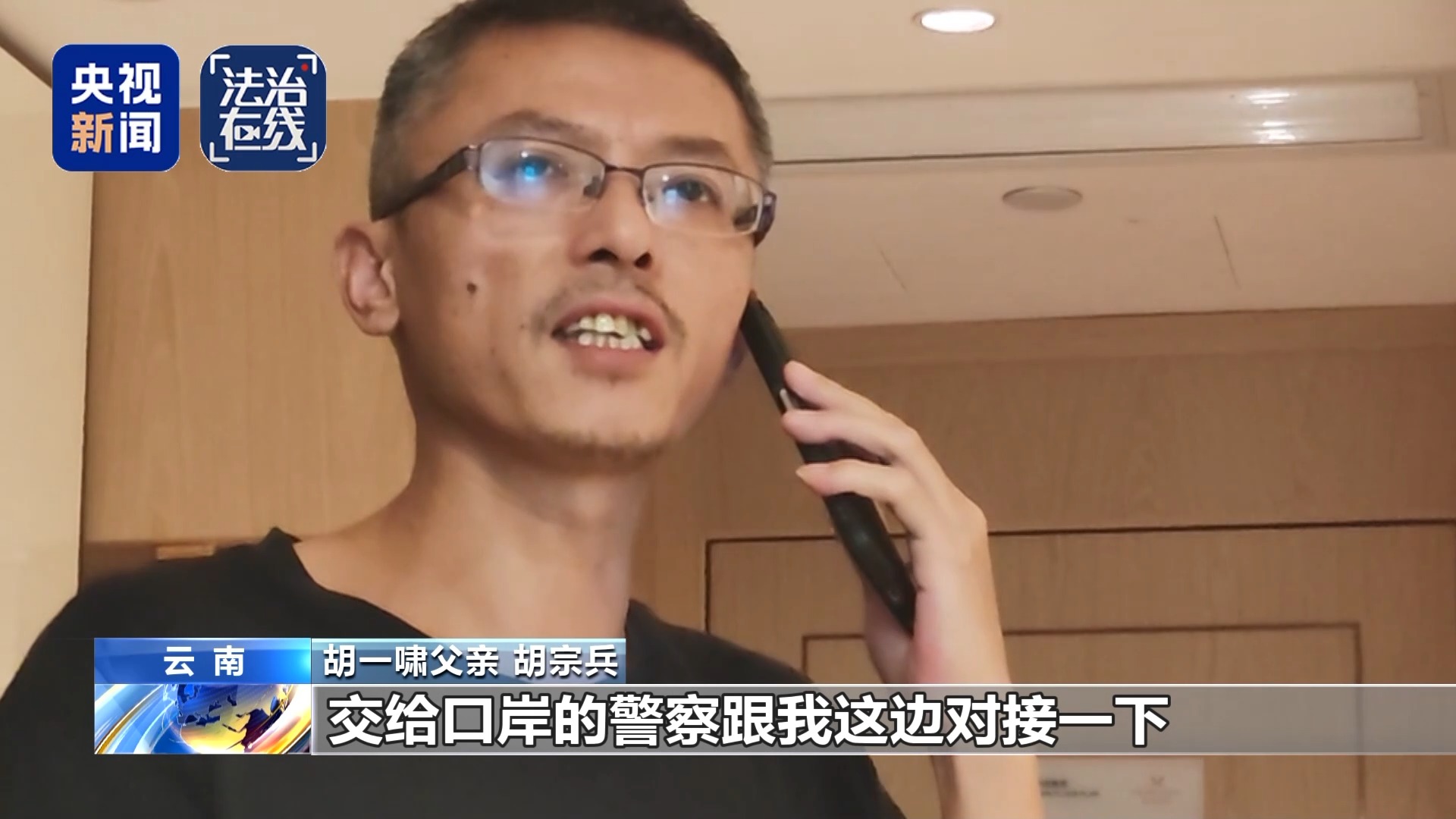 胡一啸父亲 胡宗兵:我在查资料,他电话响了,我就拍了他一下手,他就猛地一惊。反应很强烈,说明他这段日子挺担惊受怕的。