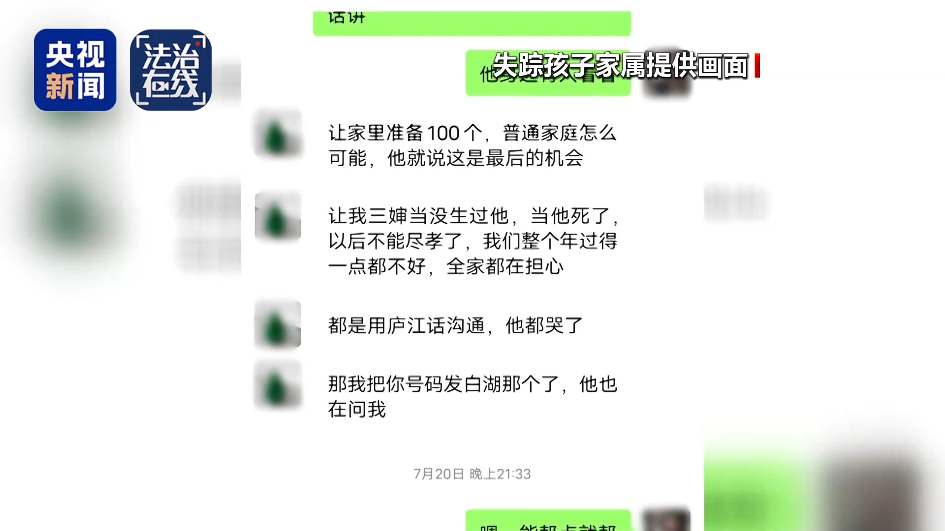 就在胡宗兵想尽办法寻找儿子时,一些不明身份的人向他发来了消息,声称可以帮他找回失联的孩子。