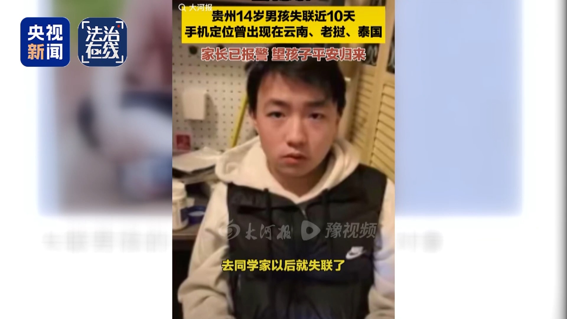 7月22日,有媒体报道,贵州省贵阳市一个14岁的男孩外出前往同学家后失联,家属随即报警,通过电话定位,发现这名男孩曾辗转贵州六盘水、云南玉溪、泰国等多个地点,目前家属已确认孩子进入了电诈园区。