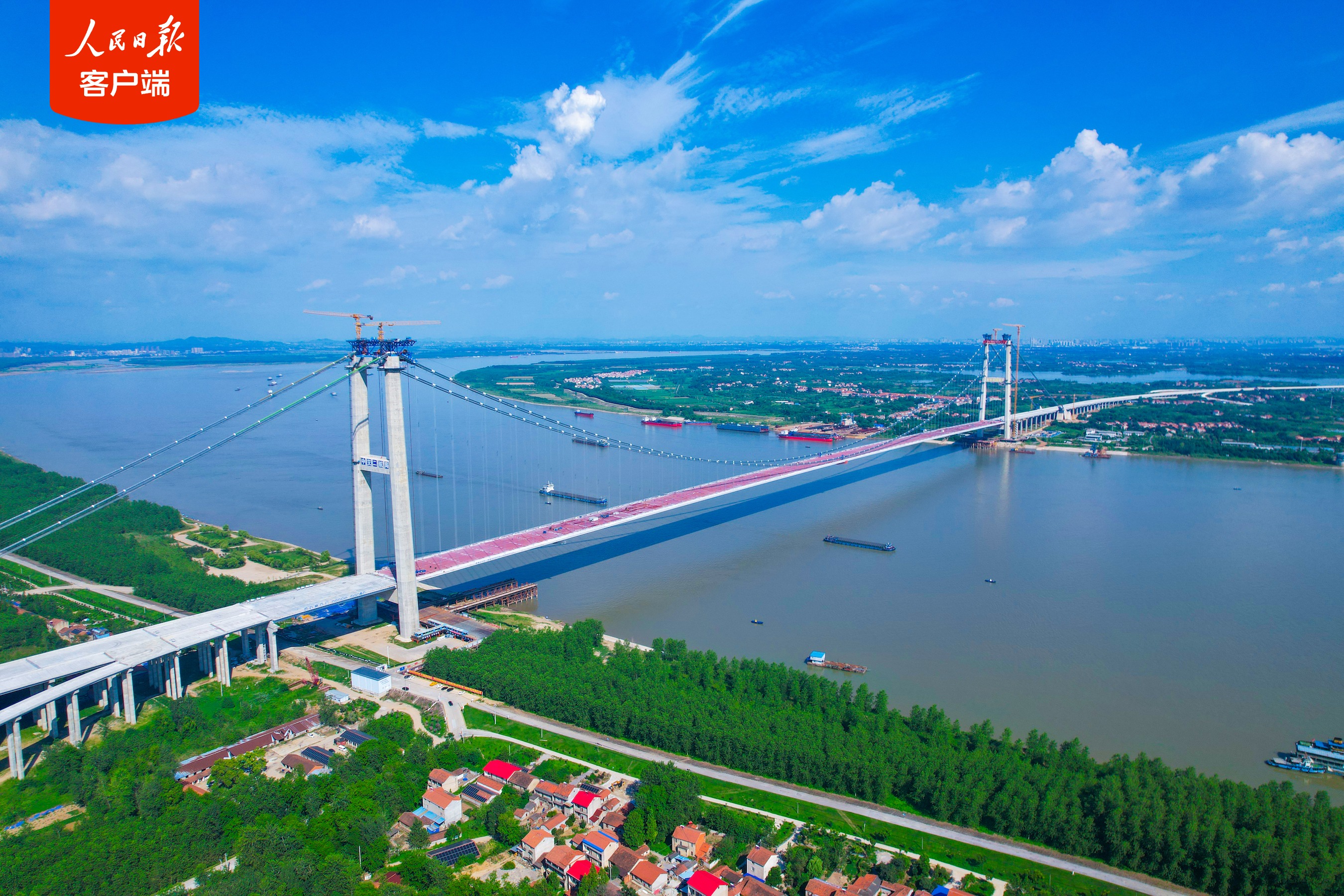 长江上最宽钢箱梁悬索桥,顺利合龙!