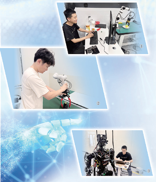 图①:灵宝机器人具身算法工程师王思成在演示机器人抓取物体。 |