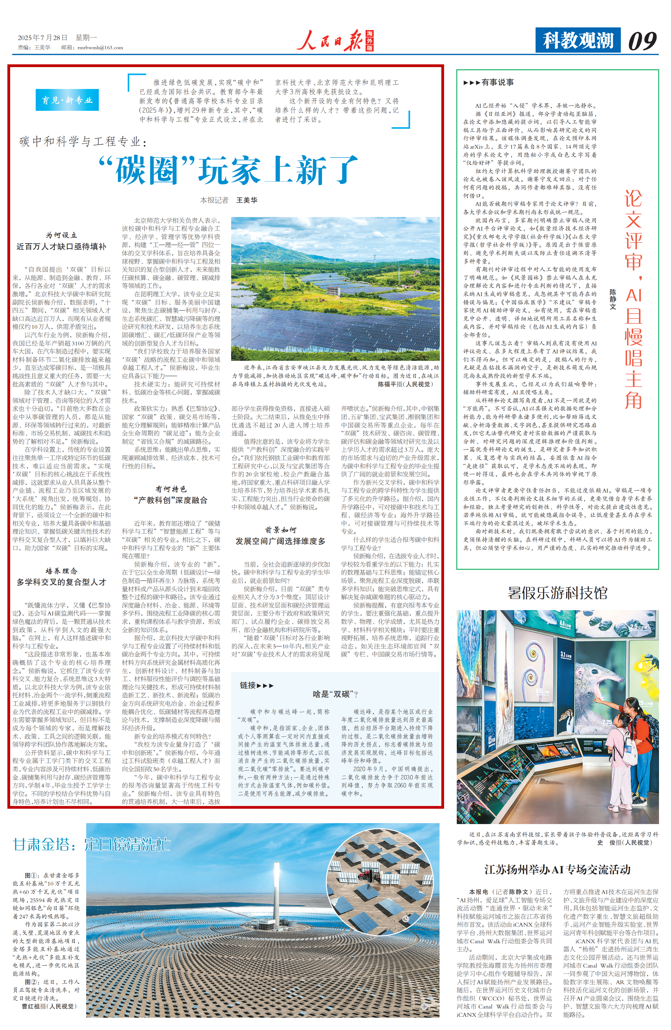 推进绿色低碳发展,实现“碳中和”已经成为国际社会共识。教育部今年最新发布的《普通高等学校本科专业目录(2025年)》,增列29种新专业,其中,“碳中和科学与工程”专业正式设立,并在北京科技大学、北京师范大学和昆明理工大学3所高校率先获批设立。