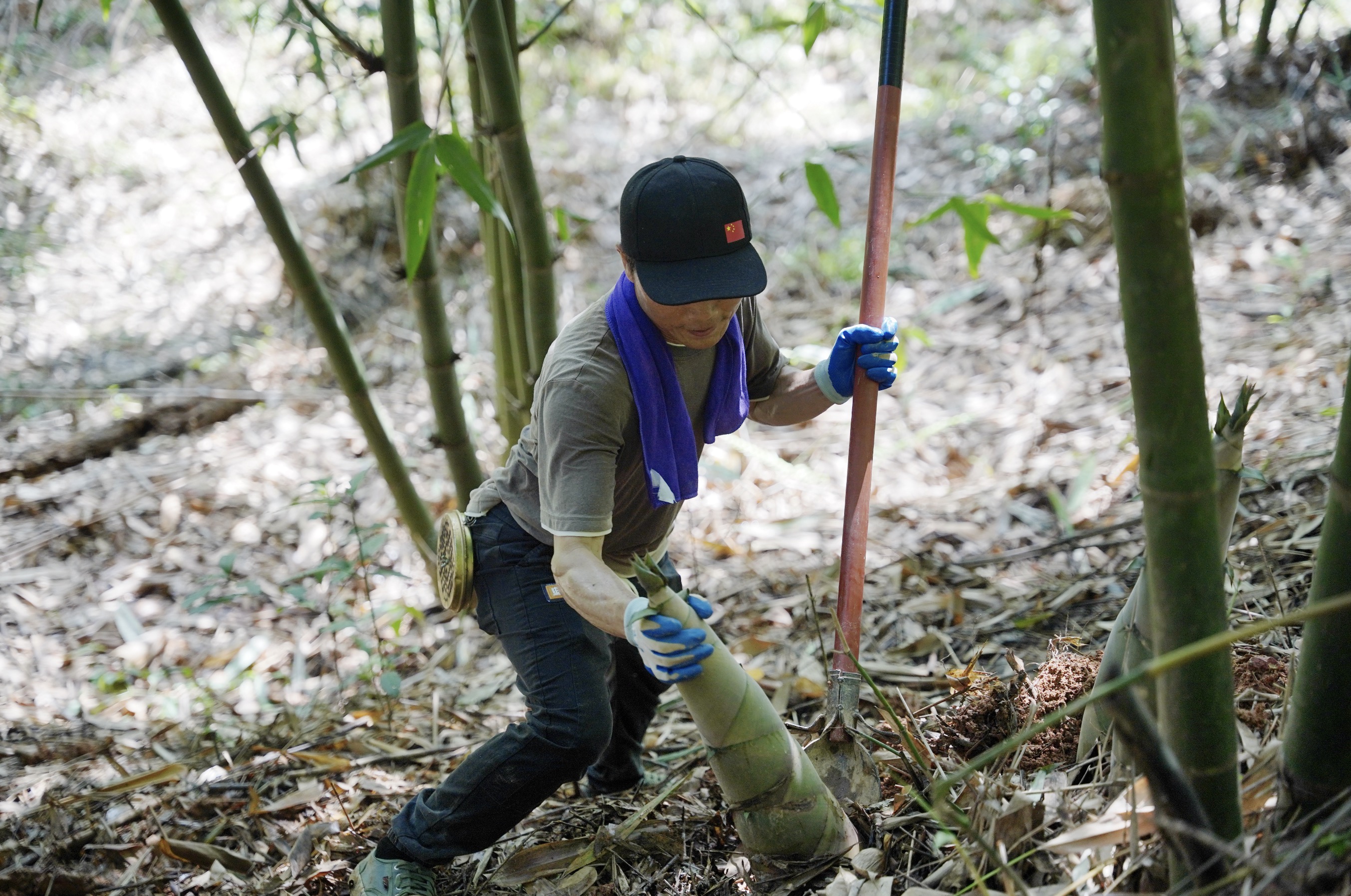 眼下正是麻竹笋上市旺季。在广西贺州市昭平县走马镇福行村,七彩田园麻竹笋种植基地的450亩麻竹林间,工人们正忙着采挖竹笋。