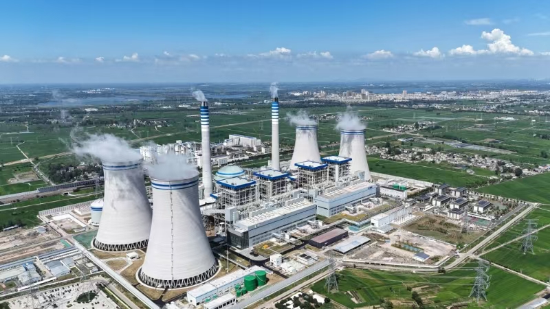 走进潘集电厂二期项目,高耸入云的冷却塔塔顶不断升腾起白色水蒸气,两台66万千瓦级超超临界燃煤发电机组正高效运转中。