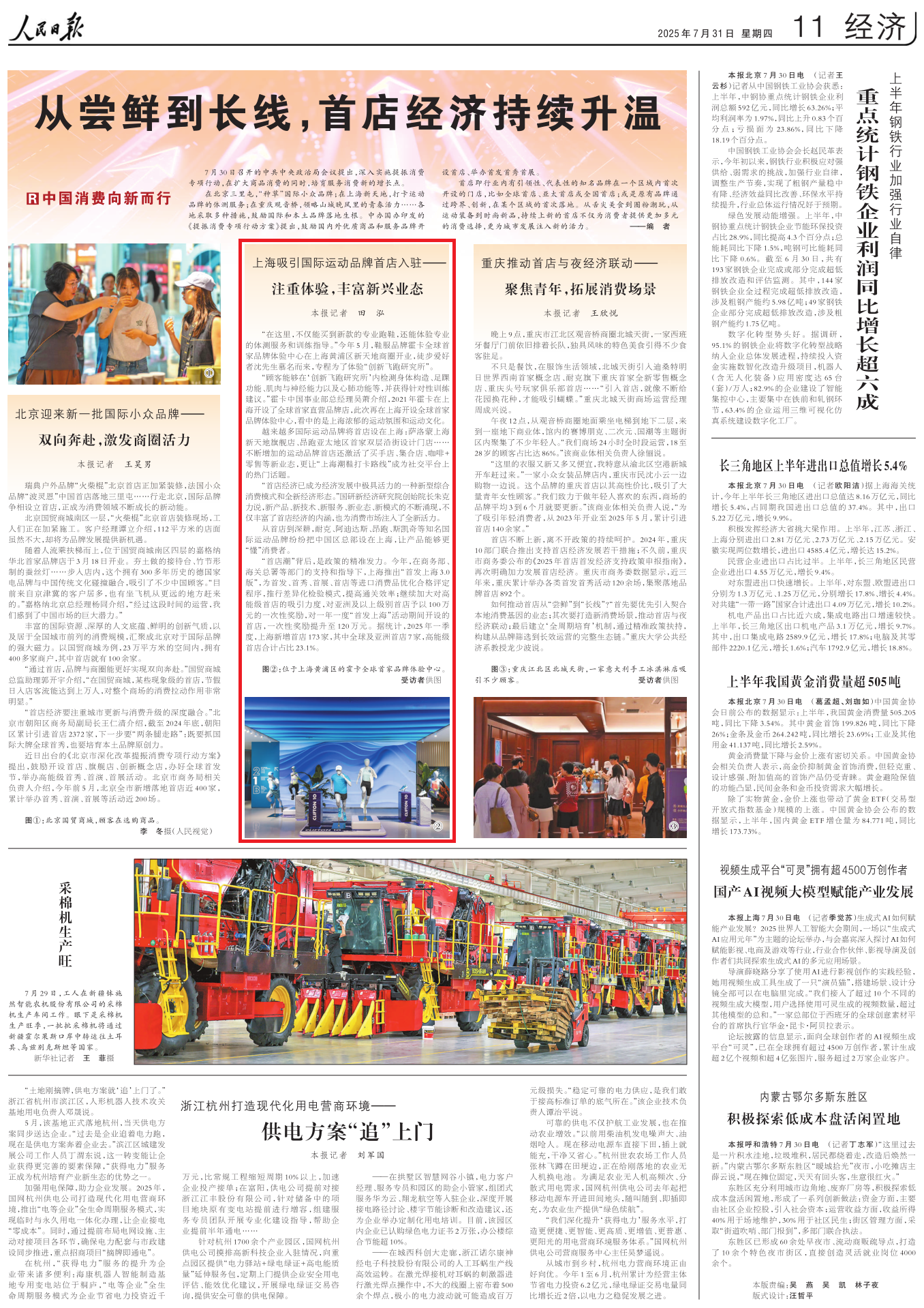 在北京三里屯,“种草”国际小众品牌;在上海新天地,打卡运动品牌的体测服务;在重庆观音桥,领略山城晚风里的青春活力……各地采取多种措施,鼓励国际和本土品牌落地生根。中办国办印发的《提振消费专项行动方案》提出,鼓励国内外优质商品和服务品牌开设首店、举办首发首秀首展。