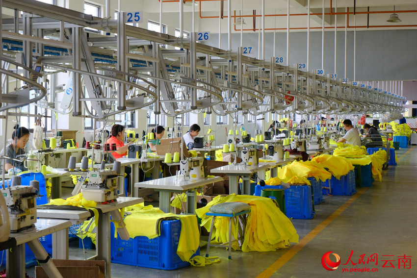 镇雄呢噜坪服装产业园的企业生产线。人民网 曾智慧摄