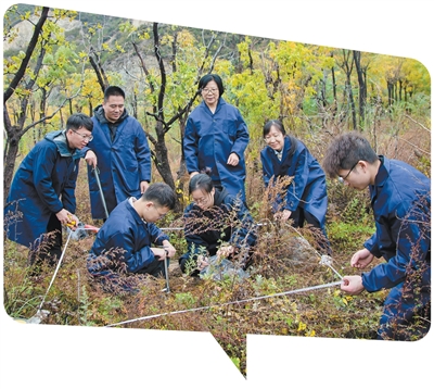 程芳琴(后排左三)带领团队开展样方调查研究。 |
