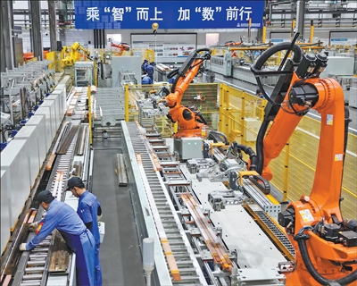近年来,黑龙江省哈尔滨市以科技创新为产业跃迁动力,推动创新链、人才链、产业链加速耦合。图为8月4日,哈尔滨电机厂有限责任公司的智能制造车间内,工人在作业。