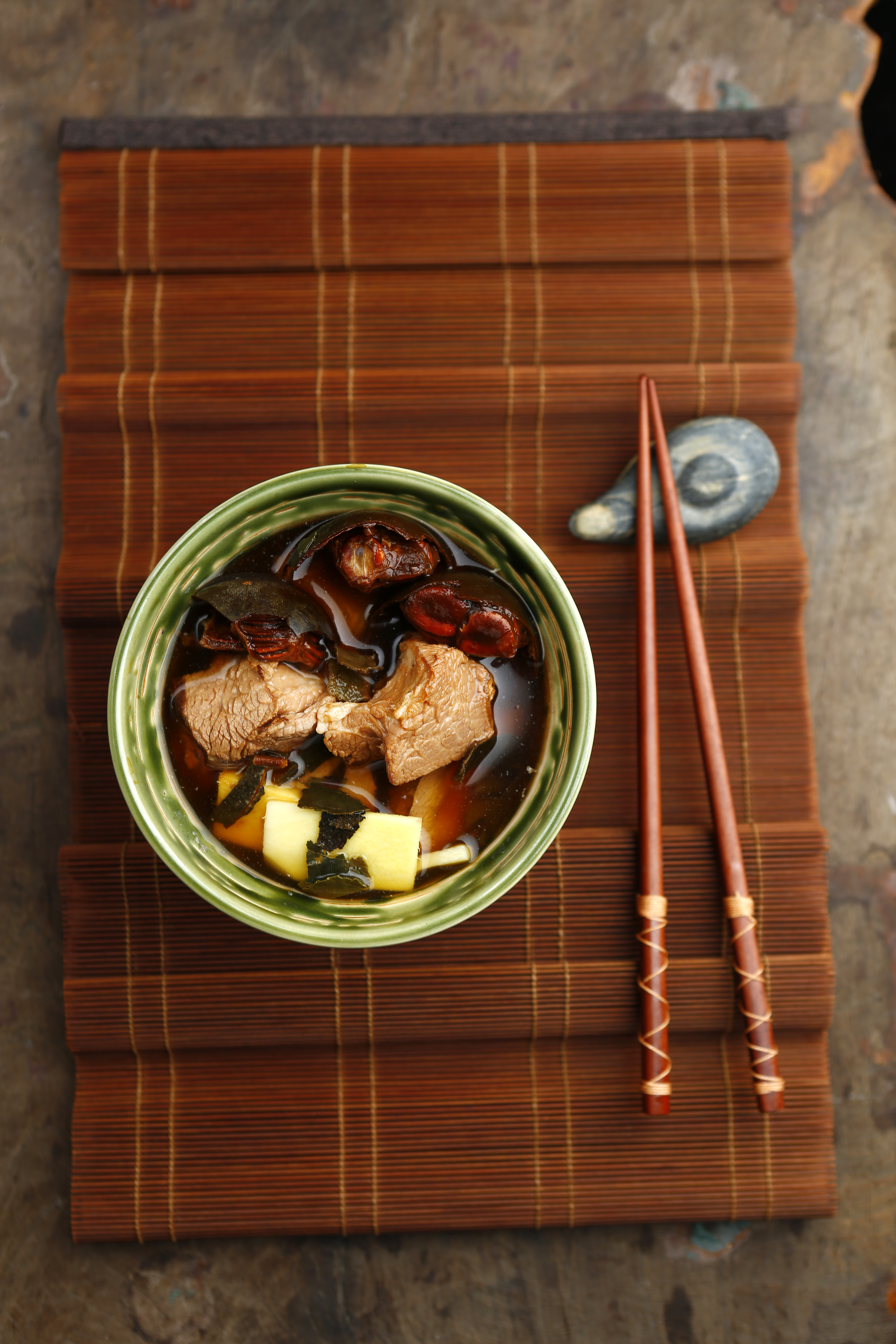 (2) 向锅内加入适量清水,煮沸后放入上述材料,煮1小时,调味即可。