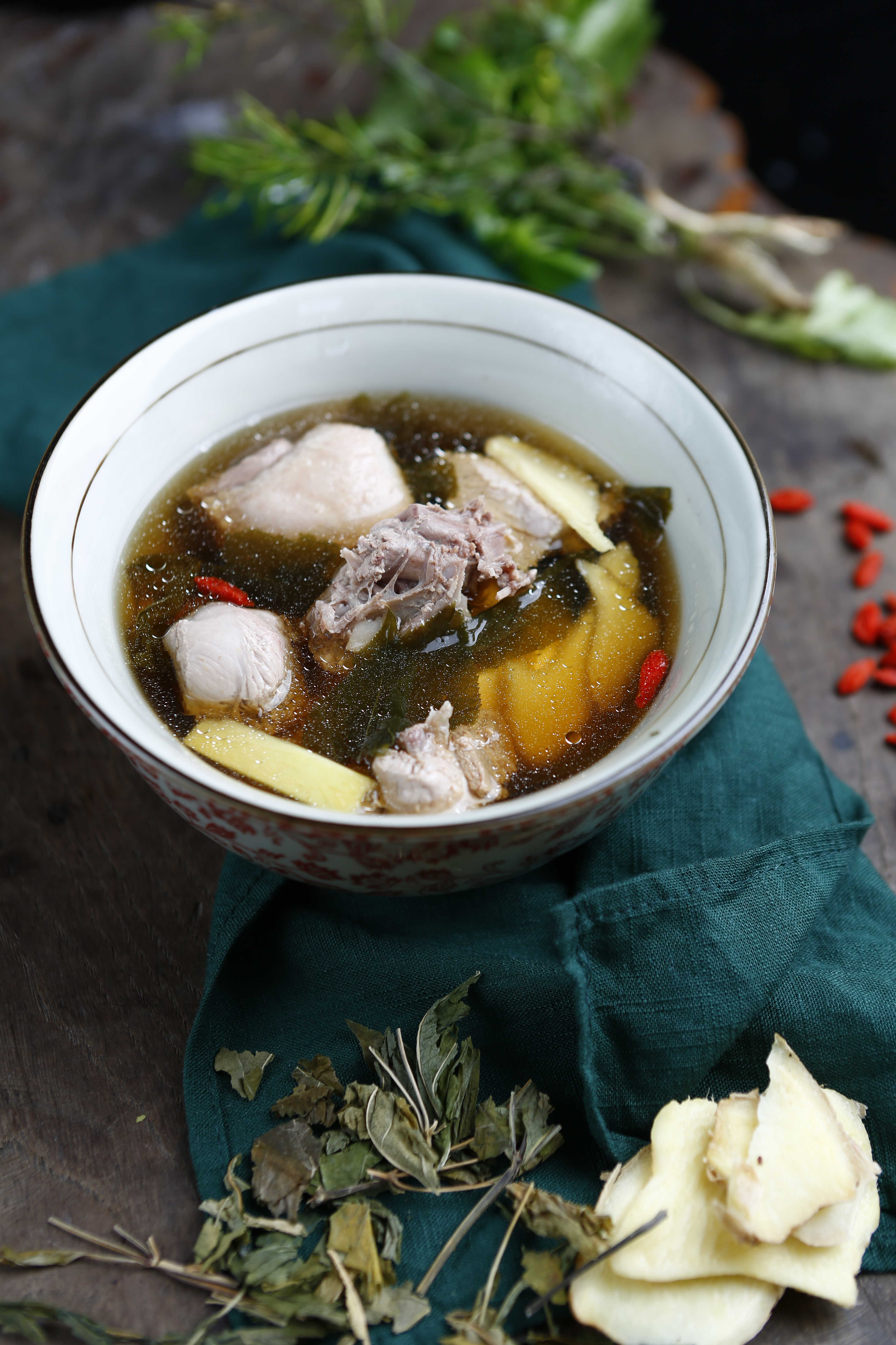 菜品特点:人参叶、人参须性微寒、味甘微苦,具有“清肺,止渴”“生津润燥,益肺和肝,培补元气”的功效。参须、参叶配合水鸭煮汤,再加上生姜温中散寒、陈皮健脾而调和汤膳的寒性,清补效果非常好,是气阴两虚人士的进补佳品,尤其适合容易疲劳气短、口干舌燥、潮热盗汗、易感冒的人士。