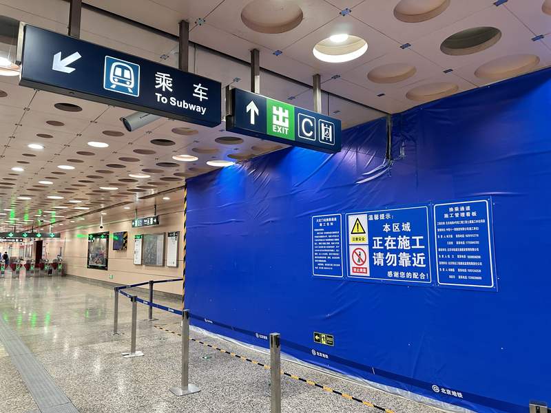 在地铁大红门站内依然可以看到多处施工围挡。新京报记者 王贵彬 摄