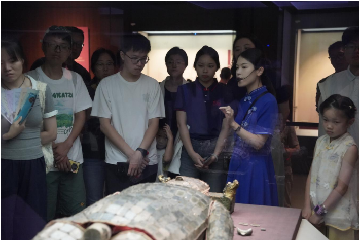 中央民族大学文学院本科生,籍贯河北省石家庄市的任熙媛认真看着每一件藏品,说道“当我们与历史对视,感受到的不仅是青铜的冷峻、玉石的温润,更是中华文明可触、可感、可续的血脉温度。”