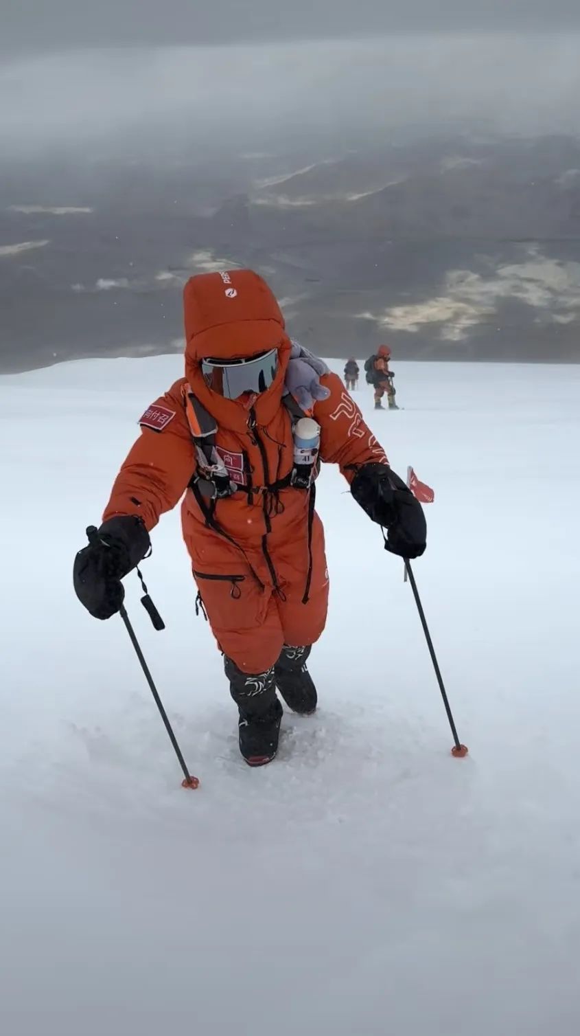 7月31日,向付召向海拔7546米的慕士塔格峰发起冲击,并成功登顶!在巅峰,“狂风带起雪粒扑来。我呼吸困难,眼睛睁不开,拿出登顶的旗子,不料瞬间被大风撕烂。我快速留下登顶证明,立即下撤。”向付召说,“我的慕士塔格已经攀登完了,完成了我的人生新高度,一个新的跨界、新的起点。”