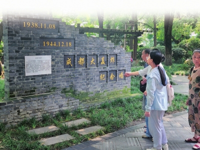这些穿越80多年时光的历史痕迹,都在诉说着1938年至1944年成都大轰炸的悲惨记忆:6年间,日寇对成都进行了31次空袭,出动飞机921架次,投弹2455枚,造成5337人死伤……在成都人民公园内的“成都大轰炸遇难同胞纪念雕塑”旁,部分遇难同胞名单显示,最小遇难者仅有1岁。